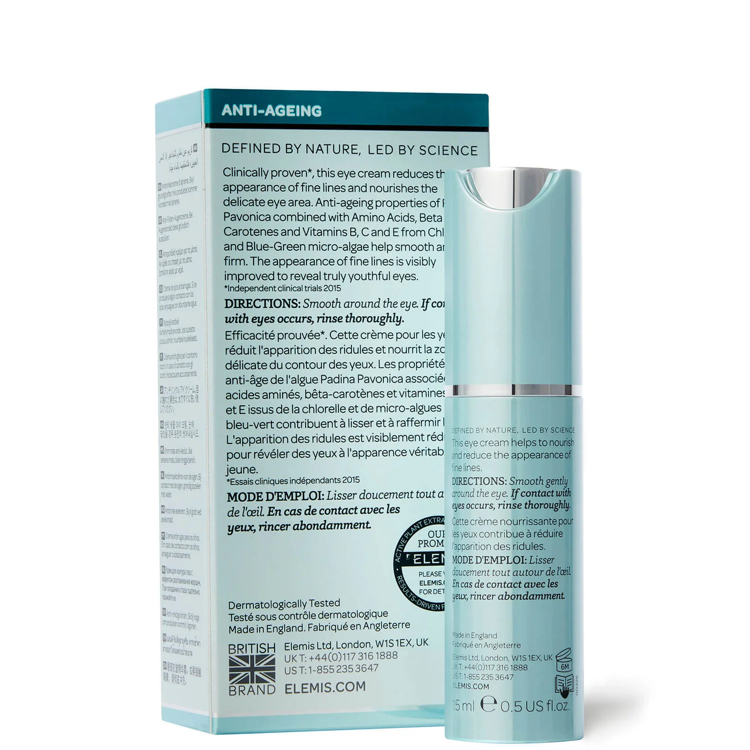 An Anti-Ageing treatment formula which scientifically captures the power of four potent Marine extracts: Padina Pavonica, Chlo Rella, Blue-Green Micro Algae and Methylsilanol Munnuronate. In just 28 days fine lines and wrinkles around the eyes will be up to 60% less visible.