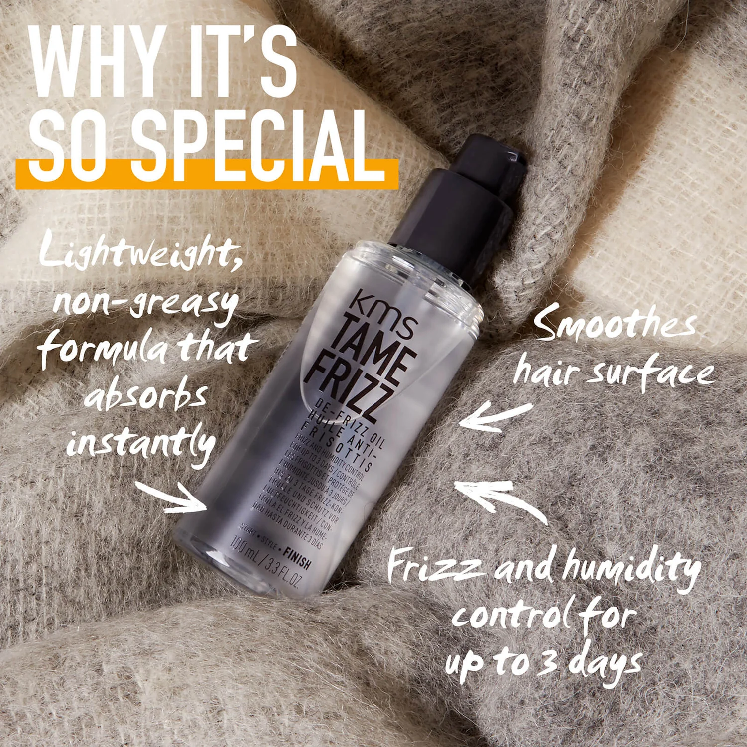 Keep hair looking sleek with the KMS TameFrizz De-Frizz Oil; a lightweight, non-greasy styling treatment that tackles frizz and humidity for up to 3 days.
